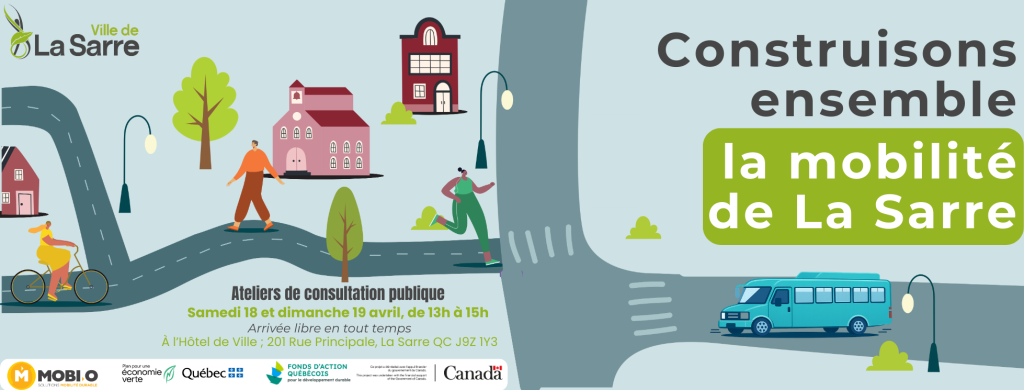 La Ville de La Sarre, en collaboration avec MOBI-O, amorce une démarche de Plan local de déplacement (PLD) visant à améliorer les conditions de déplacement sur l’ensemble de son territoire. Cette démarche a pour objectif de mieux comprendre les besoins et les habitudes de déplacement de la population, d’identifier les enjeux actuels et futurs et de proposer des actions concrètes pour favoriser des déplacements plus sécuritaires, plus accessibles et plus durables.