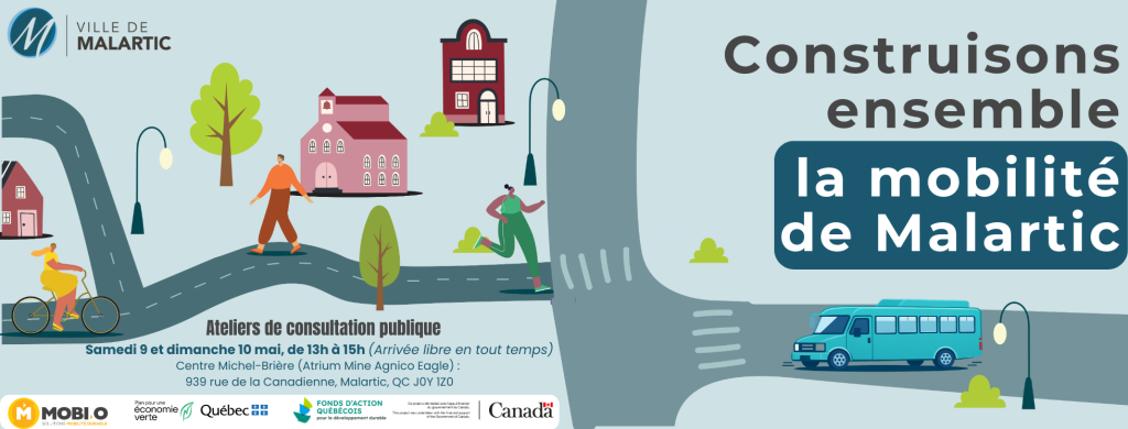La Ville de Malartic, en collaboration avec MOBI-O, amorce une démarche de Plan local de déplacement (PLD) visant à améliorer les conditions de déplacement sur l’ensemble de son territoire. Cette démarche a pour objectif de mieux comprendre les besoins et les habitudes de déplacement de la population, d’identifier les enjeux actuels et futurs et de proposer des actions concrètes pour favoriser des déplacements plus sécuritaires, plus accessibles et plus durables.