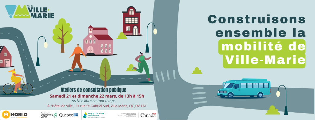La Ville de Ville-Marie, en collaboration avec MOBI-O, amorce une démarche de Plan local de déplacement (PLD) visant à améliorer les conditions de déplacement sur l’ensemble de son territoire. Cette démarche a pour objectif de mieux comprendre les besoins et les habitudes de déplacement de la population, d’identifier les enjeux actuels et futurs et de proposer des actions concrètes pour favoriser des déplacements plus sécuritaires, plus accessibles et plus durables.